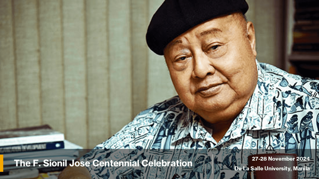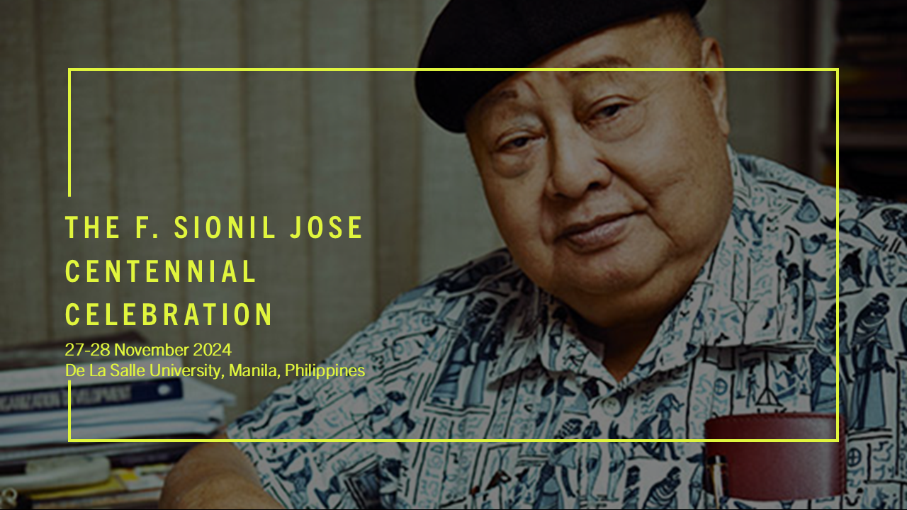 The F. Sionil Jose Centennial Celebration is organized by Solidaridad Enterprises, De La Salle University (DLSU), the Philippine Center of International PEN, and the Cultural Center of the Philippines (CCP). DLSU units include the College of Liberal Arts Office of the Assistant Dean for Research and Advanced Studies, the Department of Literature, the Bienvenido N. Santos Creative Writing Center, the DLSU Libraries, and the Office of the Vice President for Research and Innovation.
