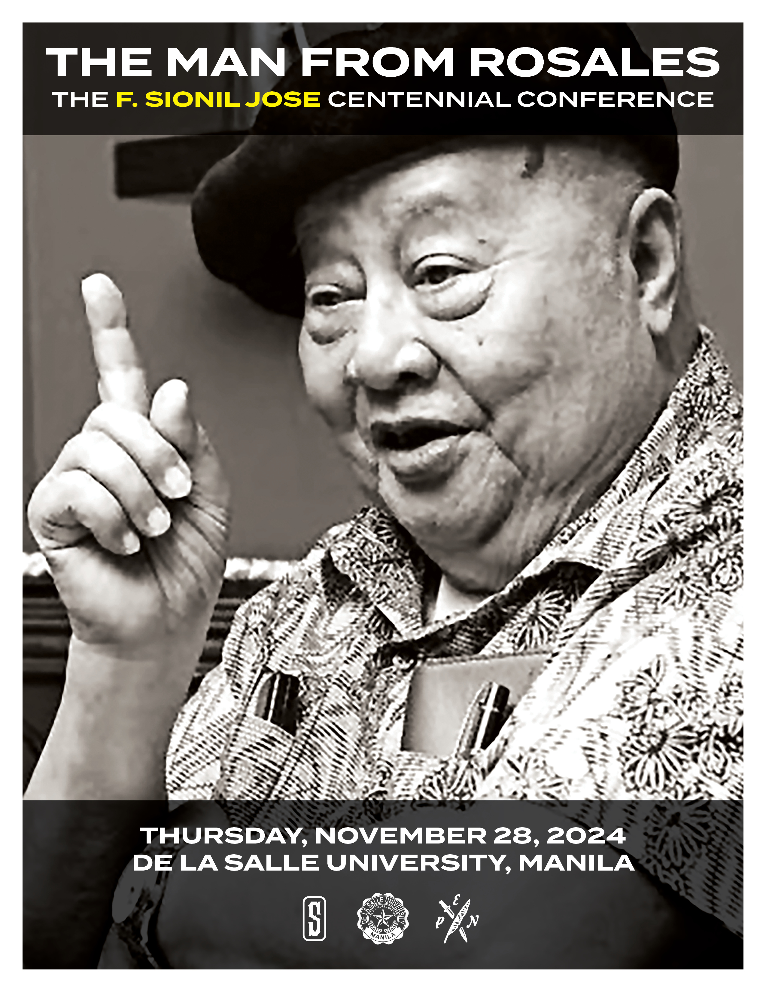 The F. Sionil Jose Centennial Celebration is organized by Solidaridad Enterprises, De La Salle University (DLSU), the Philippine Center of International PEN, and the Cultural Center of the Philippines (CCP). DLSU units include the College of Liberal Arts Office of the Assistant Dean for Research and Advanced Studies, the Department of Literature, the Bienvenido N. Santos Creative Writing Center, the DLSU Libraries, and the Office of the Vice President for Research and Innovation.